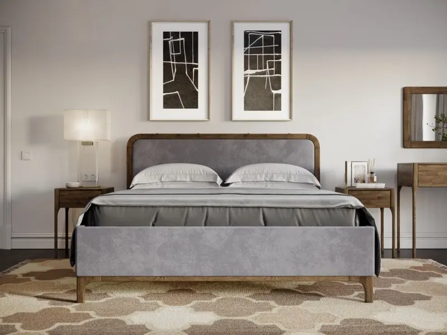 Массив+ткань, обратная сторона изголовья – осн. ткань Внутренние детали ЛДСП, фанера